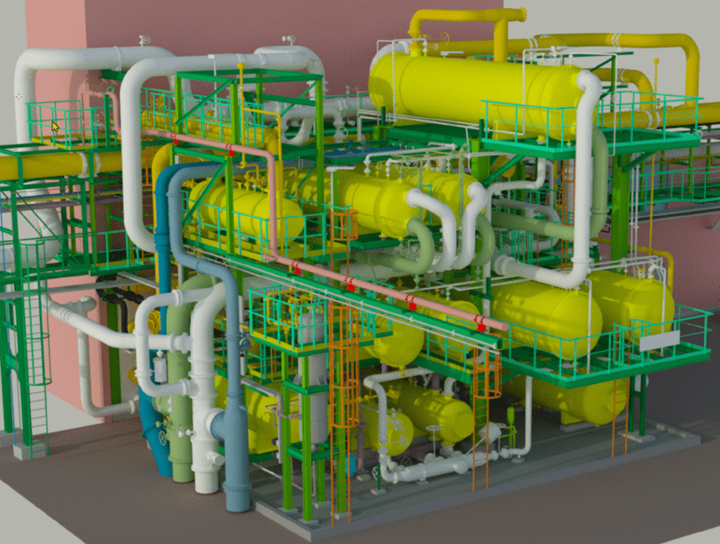 - Erstellung von 3D-Modellen für Gebäude, Stahlbau, Apparate und Rohrleitungen auf Basis definierter Rohrklassen
